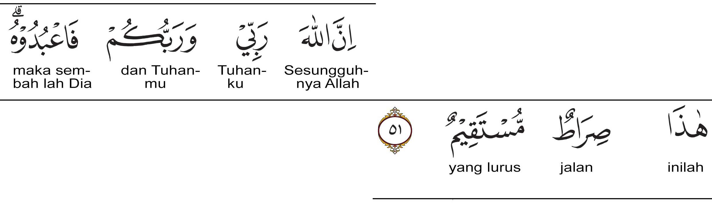 Sesungguhnya, Allah adalah Tuhanku dan Tuhan kamu, sebab itu sembahlah Dia. lnilah jalan yang lurus."