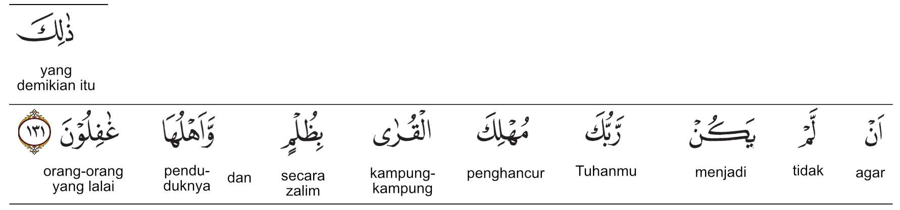 Allah membinasakan suatu negeri karena kezaliman mereka sendiri, bukan karena Allah berbuat zalim kepada mereka. Hukuman turun setelah peringatan datang dan setelah hujjah dijelaskan dengan sempurna oleh para rasul.