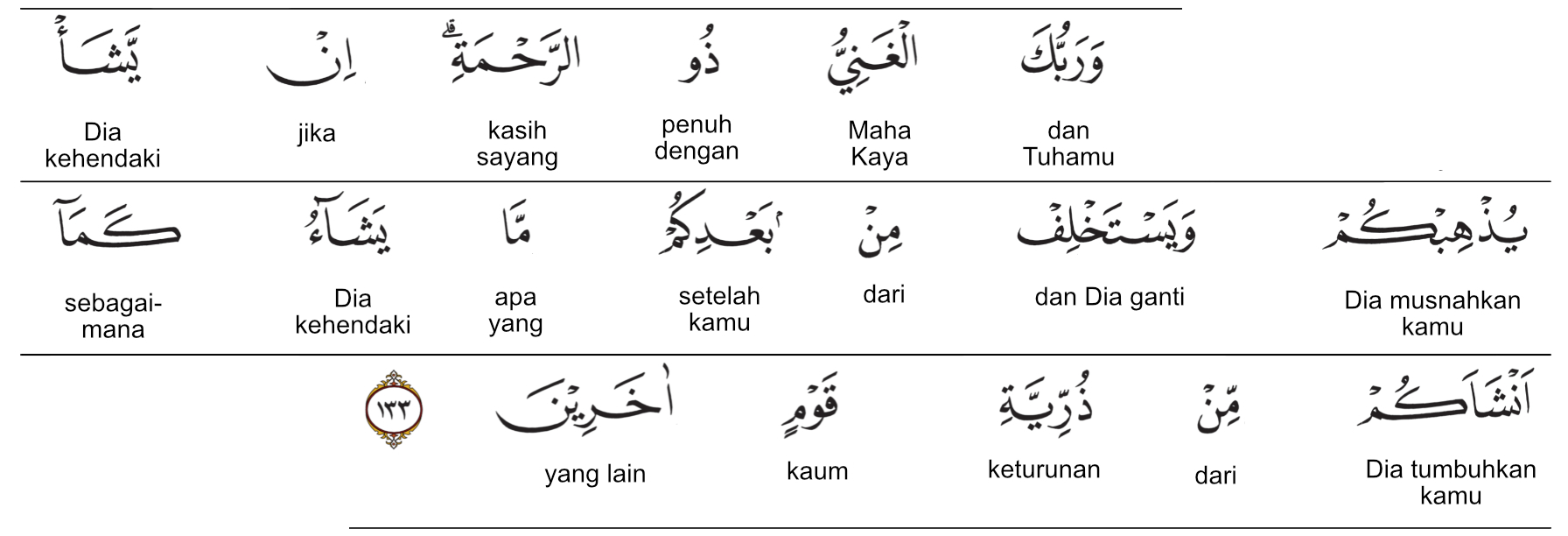 Kata min ba’di-kum (مِنْ بَعْدِكُمْ) artinya: setelah kalian. Kata maa yasyaa’u (مَا يَشَاءُ) artinya: siapa saja yang Dia kehendaki.