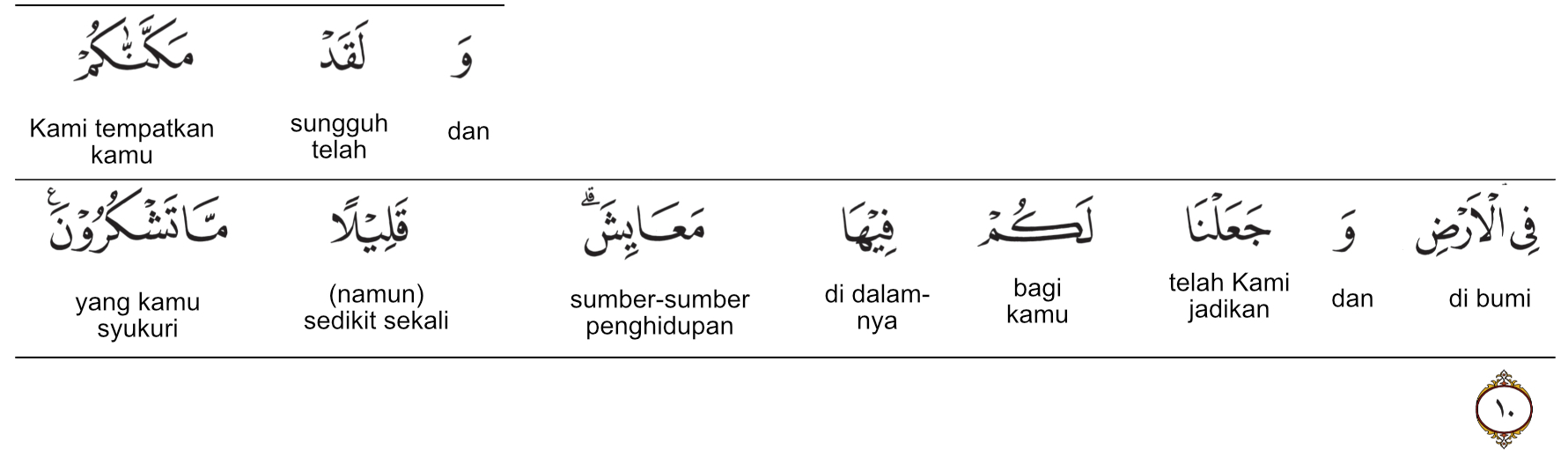 Kata ma‘ayish (مَعَايِشَ) adalah bentuk jamak dari ma‘isyah (مَعِيشَة), yang berasal dari akar kata (ع ي ش) dengan makna dasar hidup atau kehidupan. Secara makna, kata ini mencakup segala sarana yang membuat kehidupan bisa berlangsung dan berlanjut, seperti makanan, minuman, pekerjaan, keterampilan, sumber penghasilan, dan sistem kehidupan yang menopangnya.