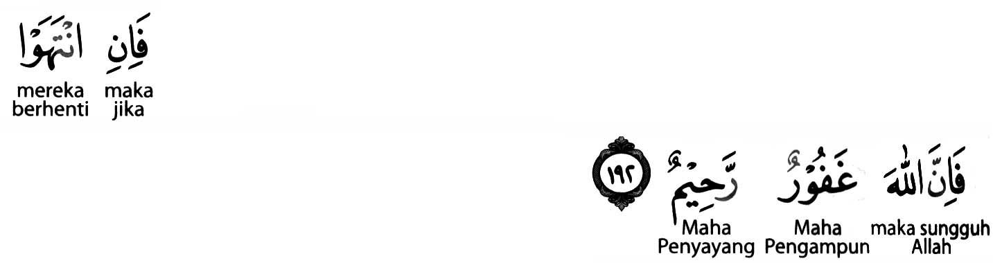 Lafazh fa-in (فَإِنِ) merupakan salah satu bentuk adatus-syarth yang maknanya : “jika”. Sedangkan lafazh intahau (انْتَهَوْا) adalah fi’il madhi yang bentuk mudhari’nya adalah (انتهى - ينتهي). Maknanya : mereka berhenti, maksudnya berhenti dari memusuhi kaum muslimin.