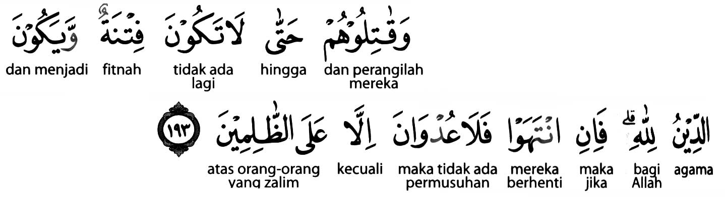 Lafazh hatta (حَتَّىٰ) artinya sampai, maksudnya perintah untuk memerangi orang kafir itu baru berhenti ketika tidak ada fitnah dan agama jadi milik Allah.