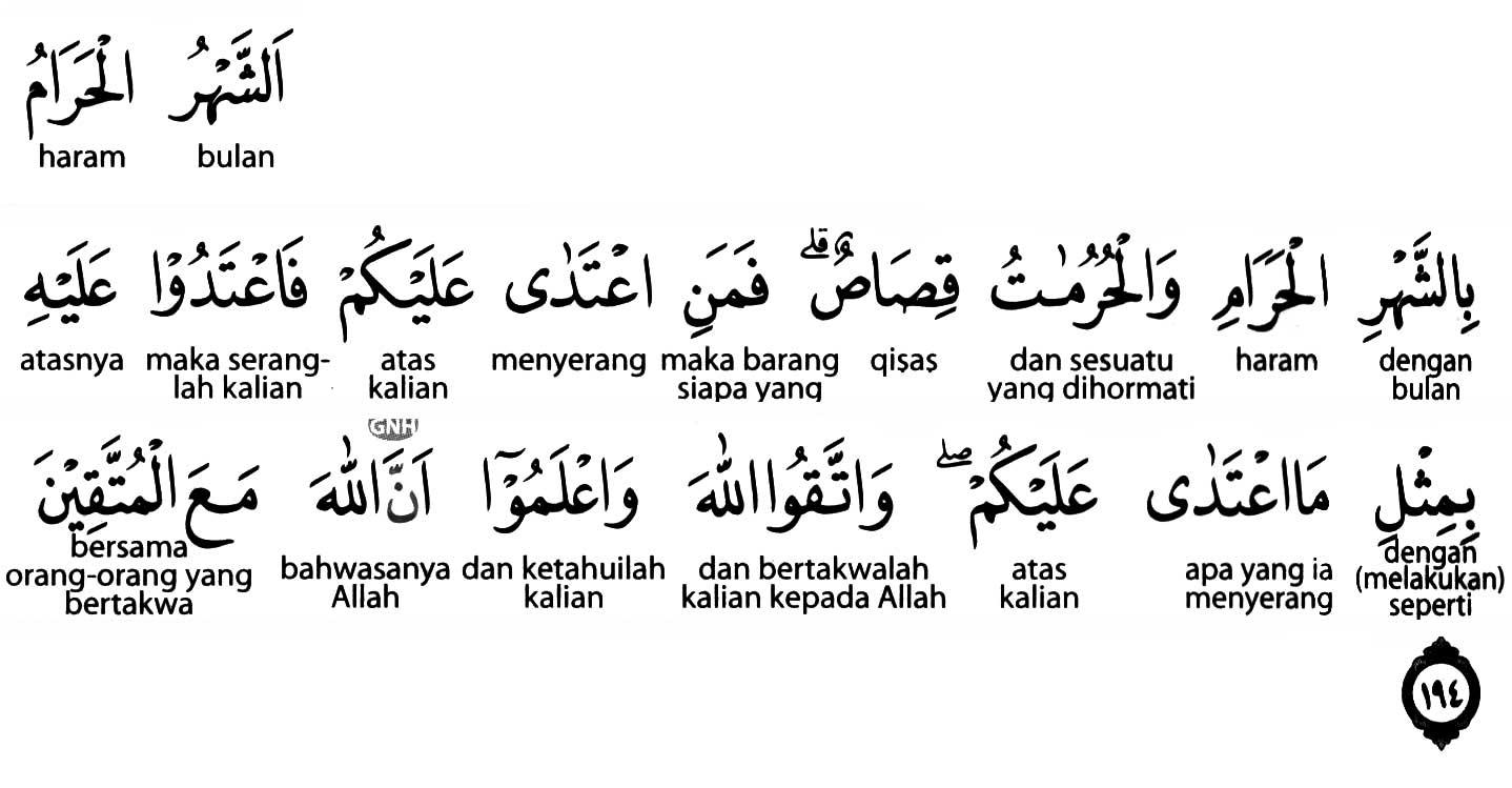 Dan dalam konteks ayat ini bahwa orang yang melanggar larangan berperang di bulan haram, mereka boleh balas diperangi dan kebolehannya dianggap seperti hukum qishash.