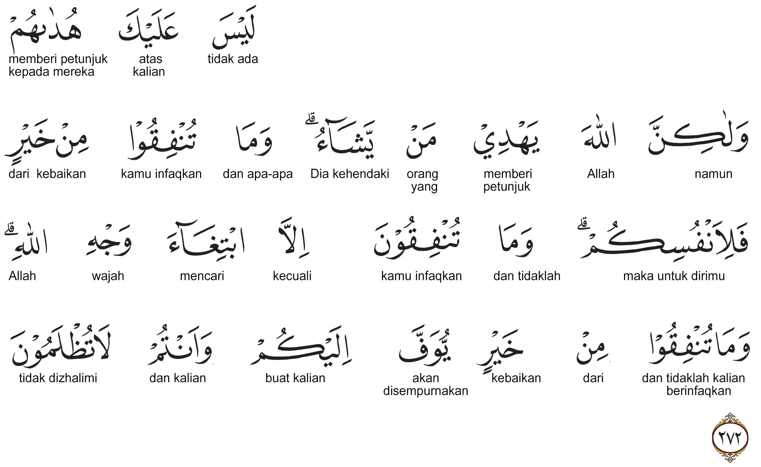 وَمَا تُنفِقُوا مِنْ خَيْرٍ فَلِأَنفُسِكُمْ وَمَا تُنفِقُونَ إِلَّا ٱبْتِغَآءَ وَجْهِ ٱللَّهِ وَمَا تُنفِقُوا مِنْ خَيْرٍۢ يُوَفَّ إِلَيْكُمْ وَأَنتُمْ لَا تُظْلَمُونَ