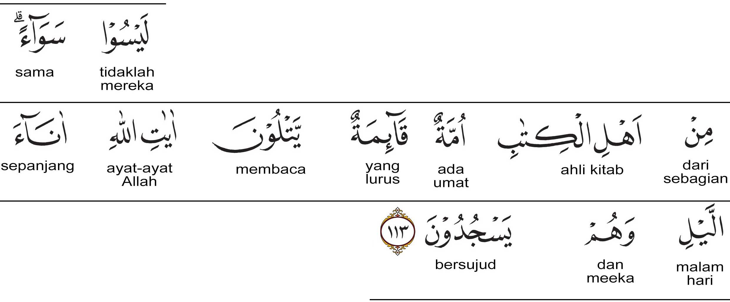 Mereka (Ahl al-Kitab) itu tidak sama; di antara mereka ada golongan yang berlaku lurus, mereka membaca ayat-ayat Allah di waktu-waktu malam, sedangkan mereka bersujud.