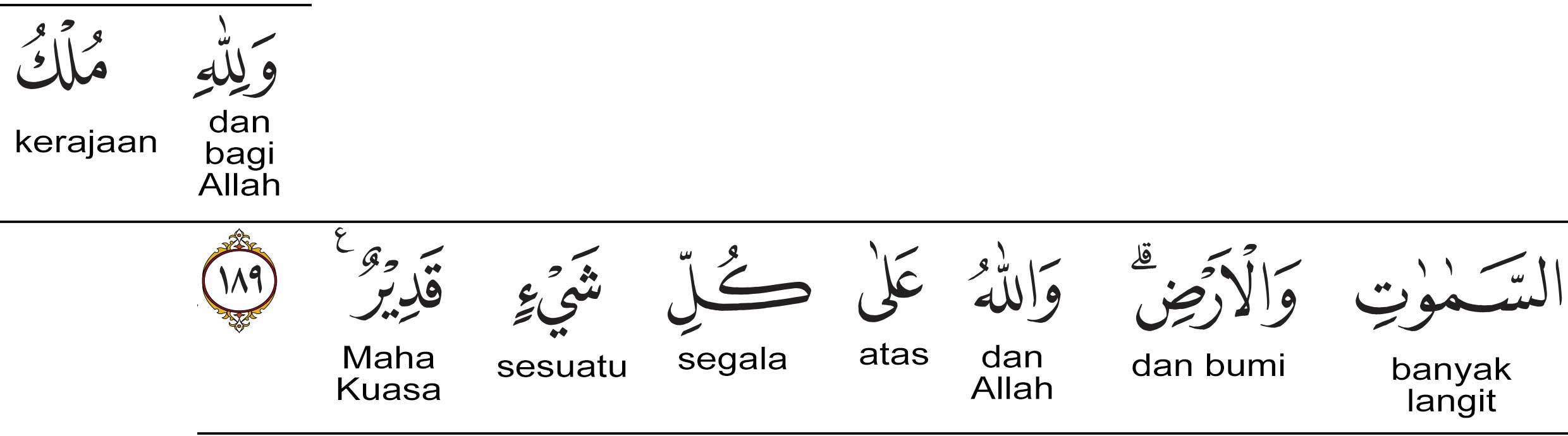 Lafazh wallahu (وَاللَّهُ) bermakna : Dan Allah. Lafazh’ala kulli sya’in (عَلَىٰ كُلِّ شَيْءٍ) artinya : atas segala sesuatu. Dan makna qadir (قَدِيرٌ) adalah : Maha Kuasa.