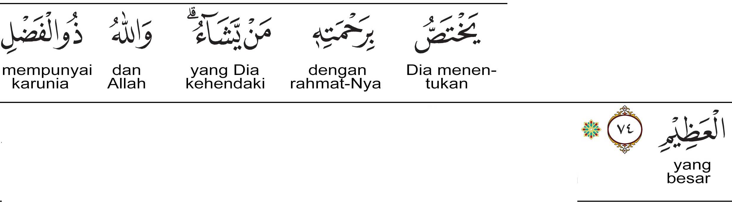 Dia menentukan rahmat-Nya kepada barang siapa yang Dia kehendaki dan Allah adalah mempunyai karunia yang besar.