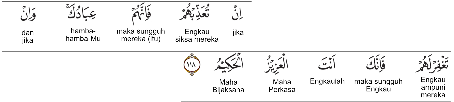 Kemenag RI 2019: Jika Engkau menyiksa mereka, sesungguhnya mereka adalah hamba-hamba-Mu. Jika Engkau mengampuni mereka, sesungguhnya Engkaulah Yang Maha Perkasa lagi Maha Bijaksana.”