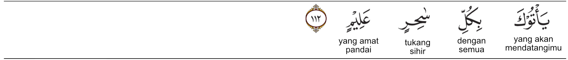 Kata ‘aliim (عَلِيمٍ) berasal dari akar kata (ع ل م) yang berarti mengetahui atau berilmu. Dalam konteks ini bermakna sangat ahli atau sangat terampil. Kata ini menjadi sifat bagi penyihir, sehingga bukan sembarang penyihir, tetapi yang benar-benar ahli di bidangnya.