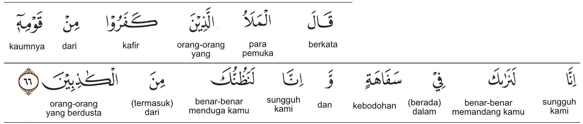 قَالَ الْمَلَأُ الَّذِينَ كَفَرُوا مِنْ قَوْمِهِ إِنَّا لَنَرَاكَ فِي سَفَاهَةٍ وَإِنَّا لَنَظُنُّكَ مِنَ الْكَاذِبِينَ